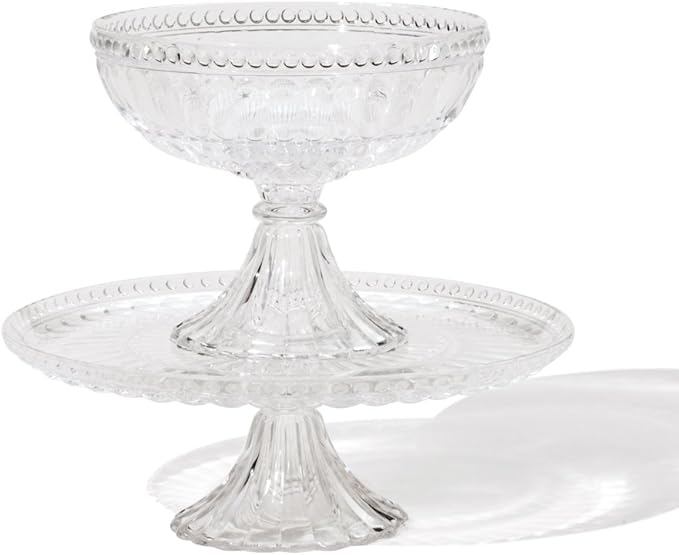 花びらのような模様を全体に施したステムつきのボウルとプレート。いつものテーブルコーディネートにプラスするだけで高さが生まれ一層華やかに、また重ねることで2段のスタンドとしても使うことができます。ステムは取りはずせるので、積み重ねてコンパクトに収納可能。持ち運びにも便利です。焼き菓子やフルーツなどの盛り付けにはもちろん、アクセサリーなどの小物を置くディスプレイ台としてもおすすめです。