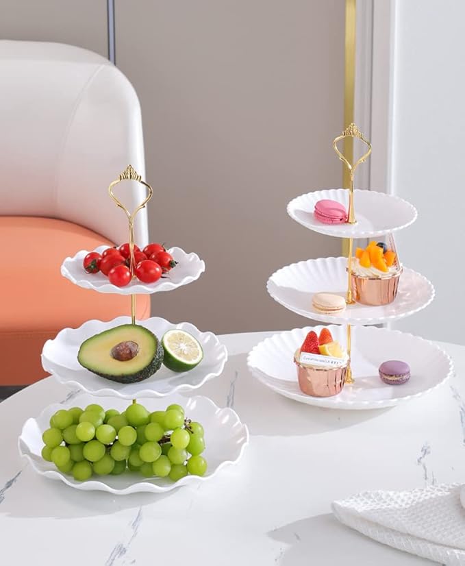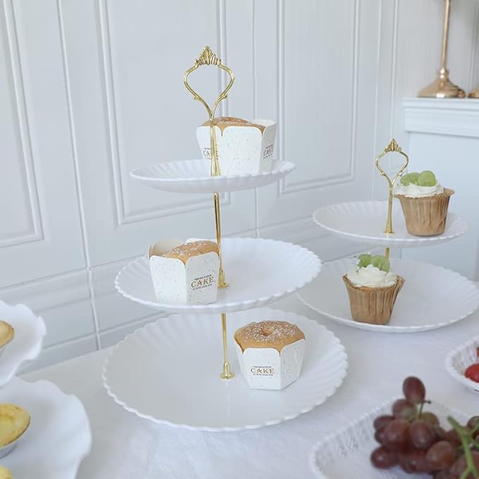 デザートスタンド ケーキスタンド 果物収納 お菓子皿 北欧風 結婚式 誕生日 パーティー用 丸型 ホワイト+ゴールド