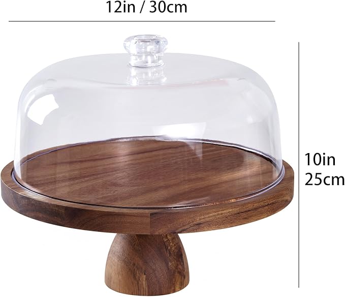 パッケージ内容:12インチ(約30 cm)のリバーシブルアカシアウッドケーキスタンド 1個、壊れにくいアクリルドームカバー 1個