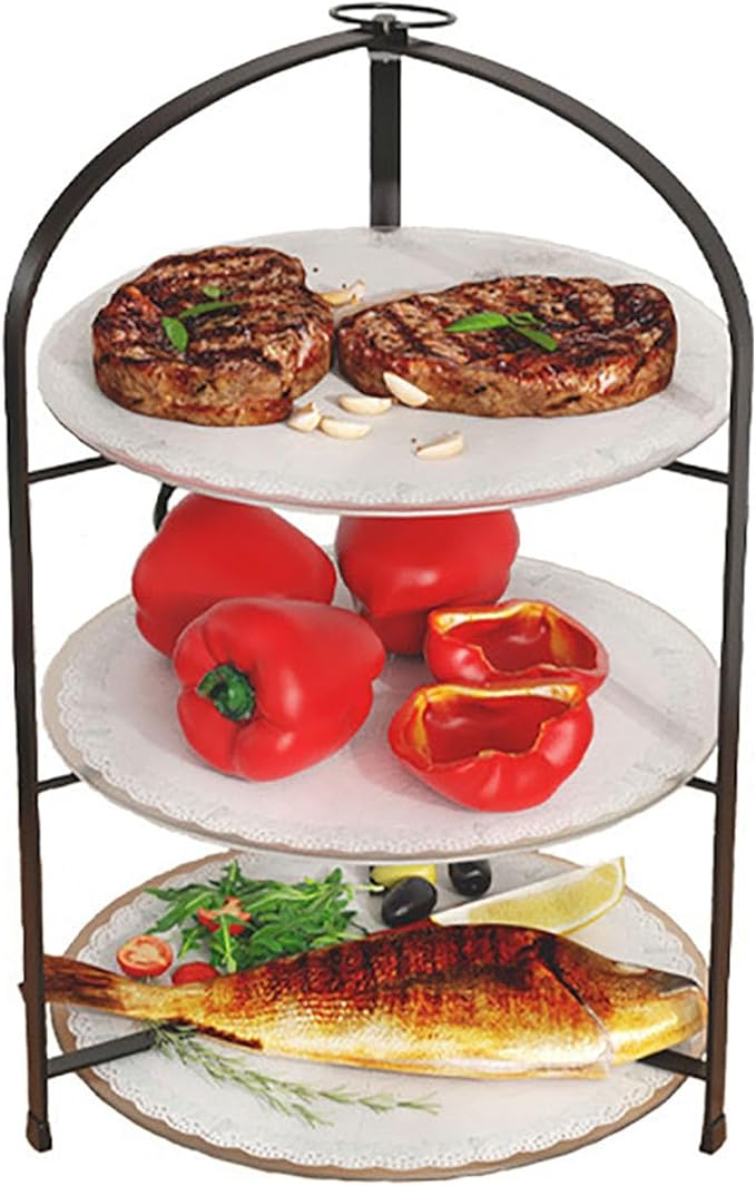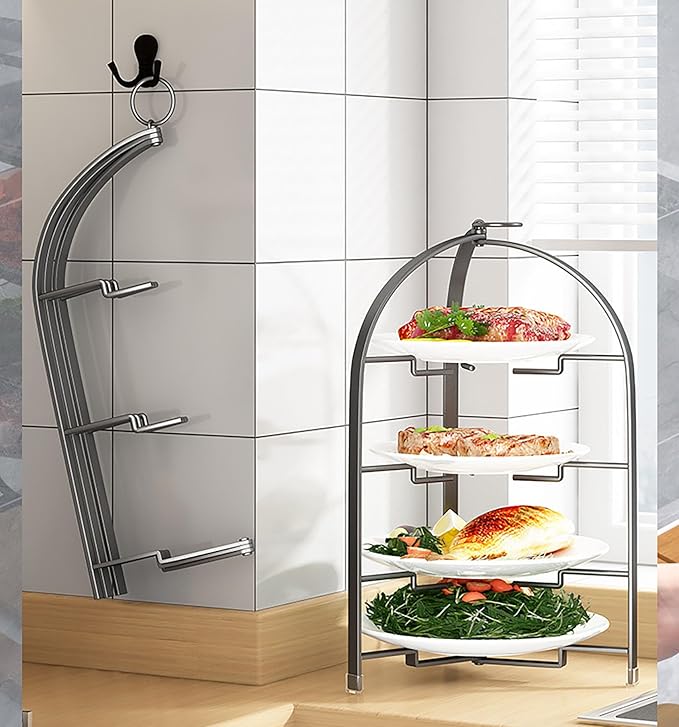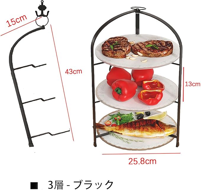 ケーキスタンド 折りたたみ ハイティースタンド 3段/4段 果物 ケーキ お菓子 お茶会 結婚式 誕生日 パーティー アフタヌーンティースタンド お皿なし(ブラック-3段)
