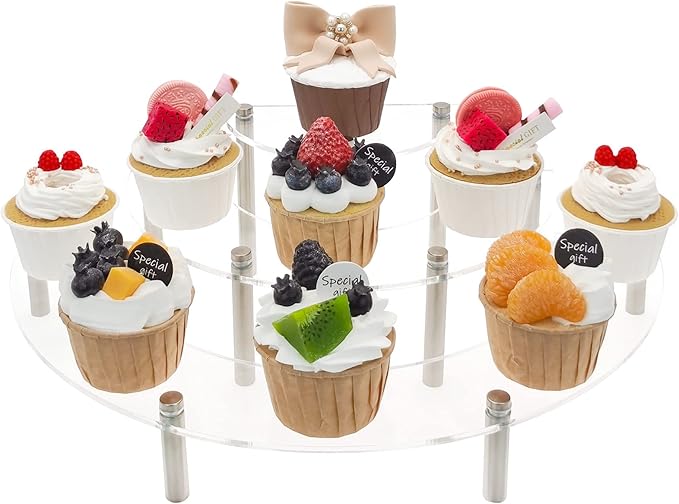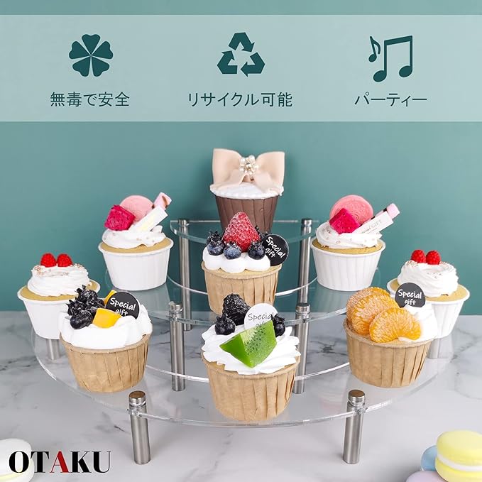 ケーキスタンド 3段 カップケーキスタンド アフタヌーンティースタンド フルーツプレート アクリルケーキ棚 ケーキ・フルーツ・デザートスナック収納用アクリルスタンド 誕生日/結婚式/パーティー/記念日のお祝い(アーチ形 3段)