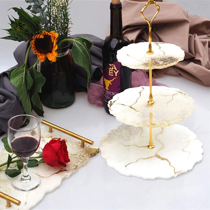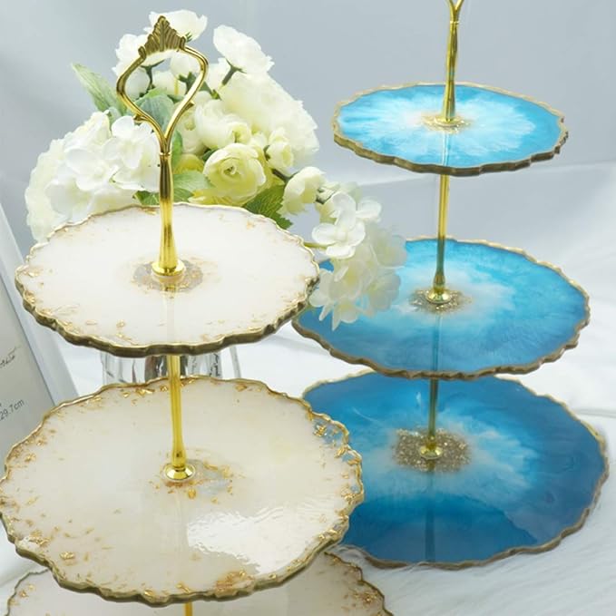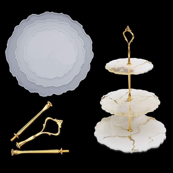 ケーキスタンド シリコンモールド フルーツプレート エポキシ樹脂 UVレジン 3段 1セット トレイ デザートプレート お菓子皿 手芸用品 DIY 手作り 金具付き アクセサリー (ケーキスタンド形)