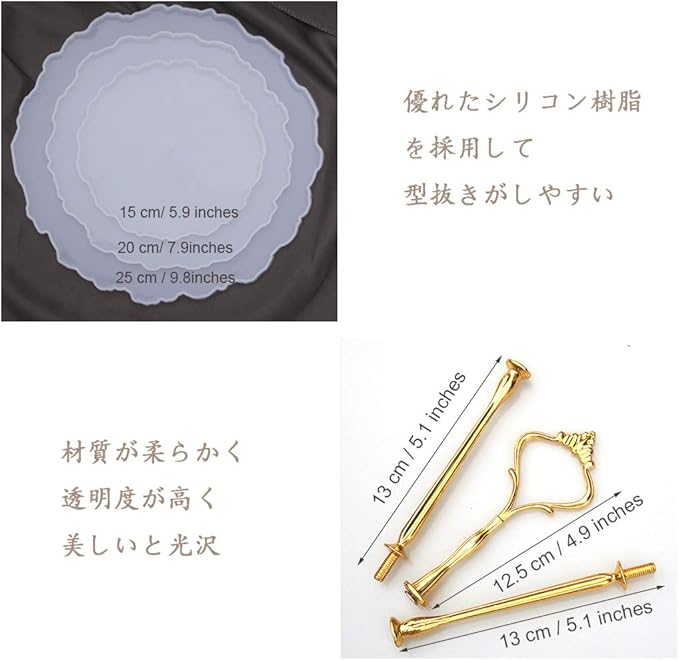 使いやすい:初めての方でも安心で、またUVレジンを使用する場合は硬化しやすく、柔らかくてモールドから簡単に離型できます。ケーキスタンドはも簡単に組み立てられ、取り外しができます。