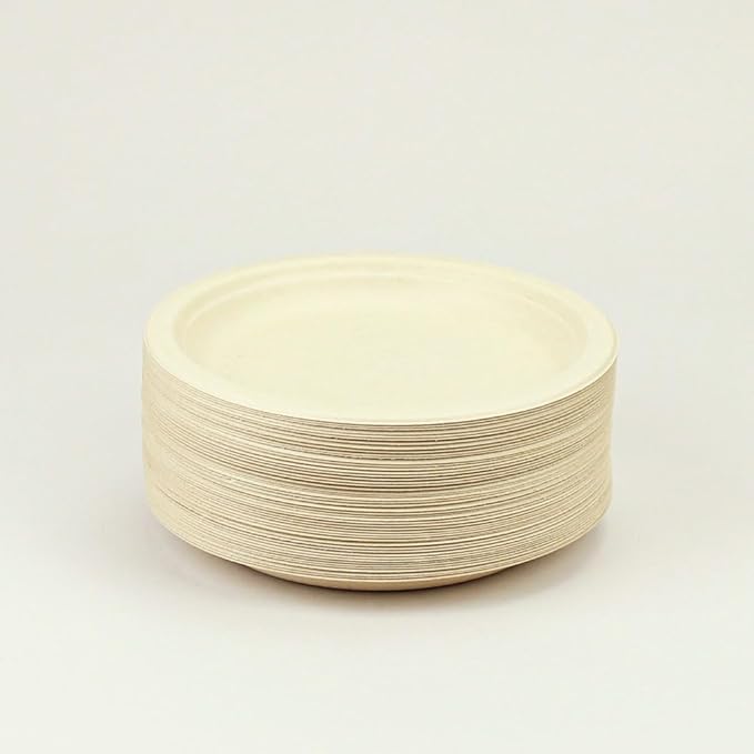 ECO&BASIC プレート18cm 50枚入 紙皿 使い捨て 皿 おしゃれ レンジ対応 バガス 未晒し 丈夫で染みにくい 環境にやさしい 植物由来 業務用 C-ECO-HM-001