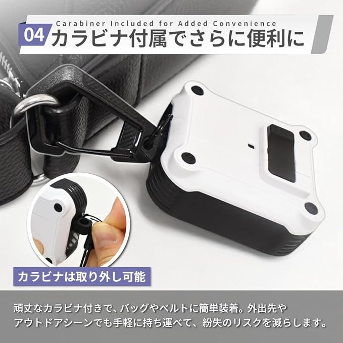 【落下を防ぐカラビナ付き】鞄などにスムーズに付けやすいカラビナを付属
