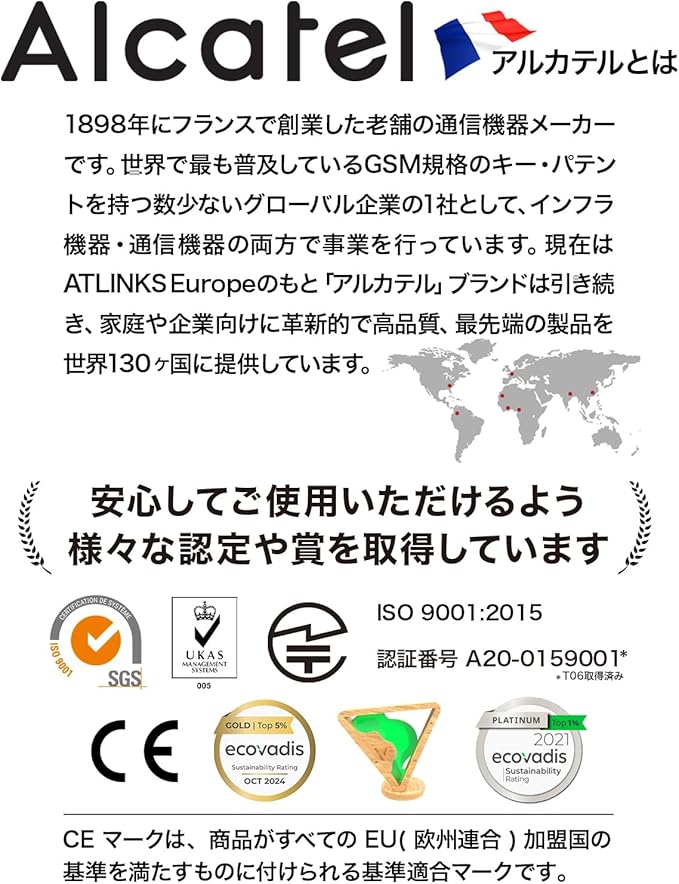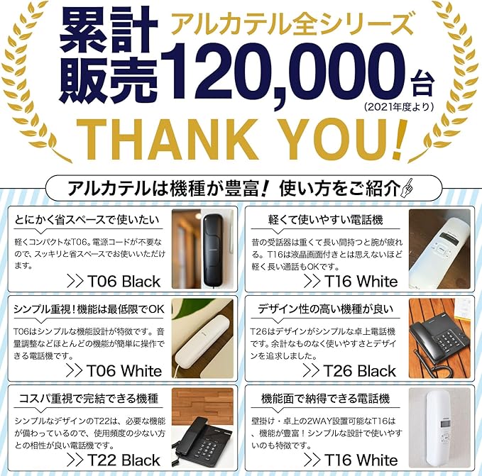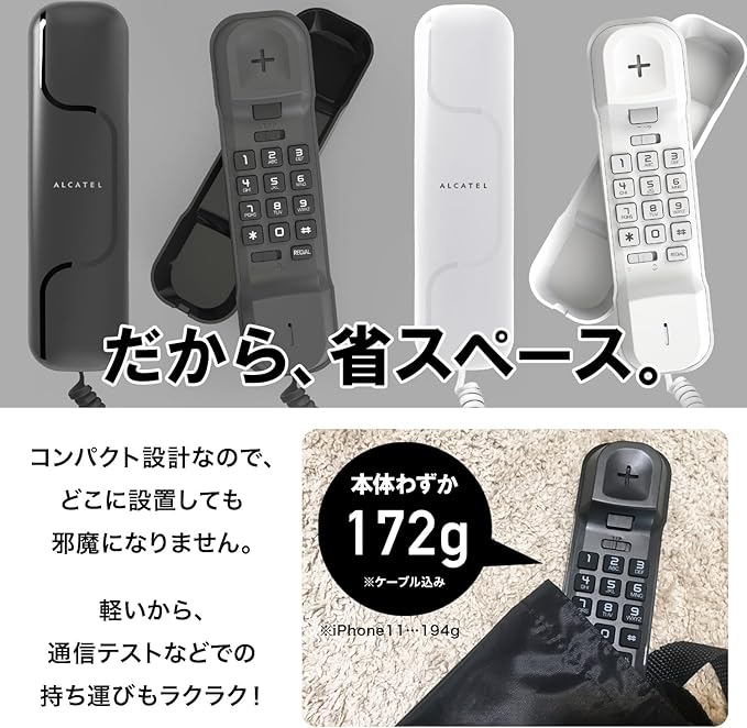 ALCATEL (アルカテル) T06 電話機 シンプル 固定電話機 ビジネスフォン 電源不要 コンパクト 小型 卓上 壁掛け アナログ回線 受付/オフィス/家庭用 ホワイト