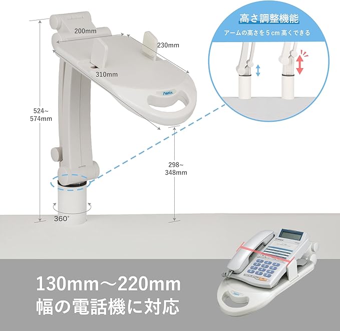 適応電話機:幅130~220mmまで、質量1kgまで