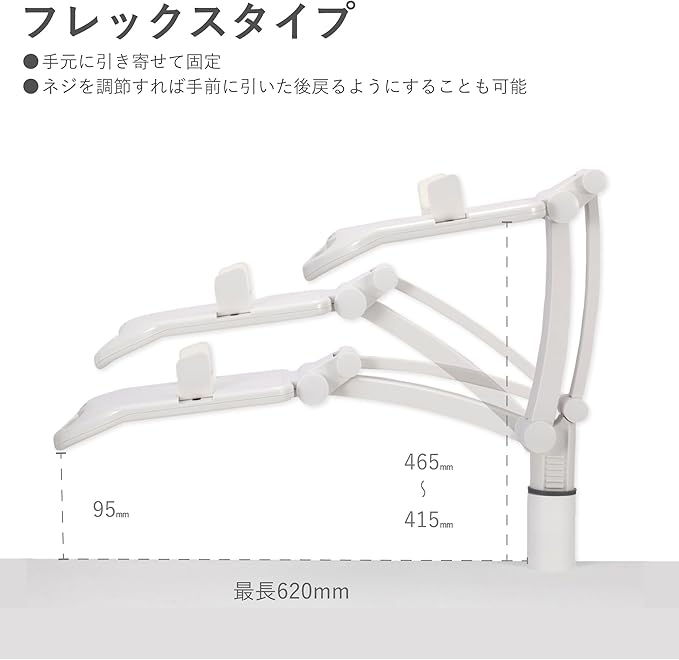高さ最長465㎜まで伸びます