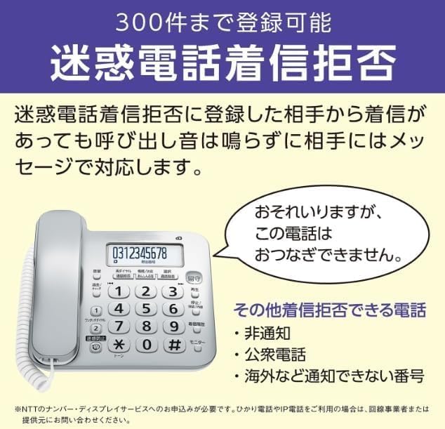 ✅ 呼出音が鳴る前に相手に警告メッセージを流す「迷惑防止」機能搭載