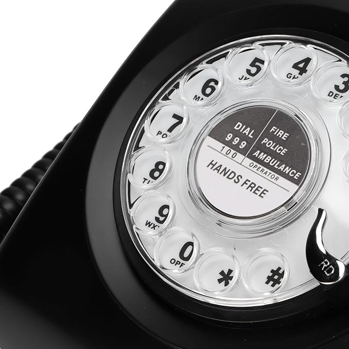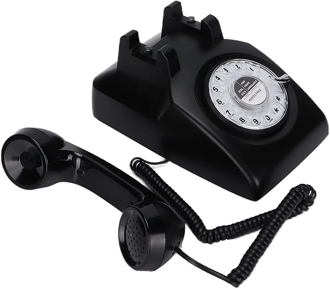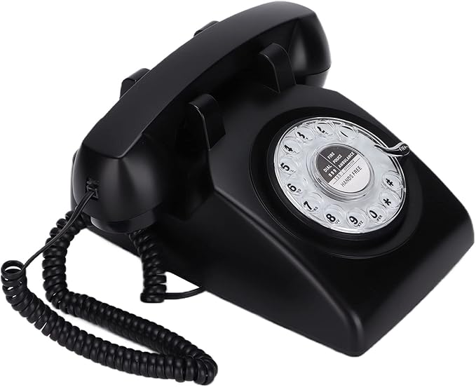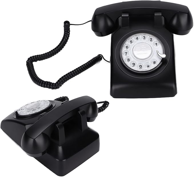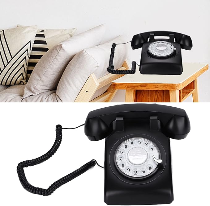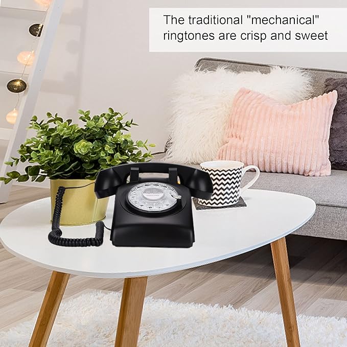 回転式ダイヤル電話、60年代のレトロな固定電話クラシックな昔ながらのカーリーコードデスク電話、家庭、オフィス、コーヒーショップ用(黒)