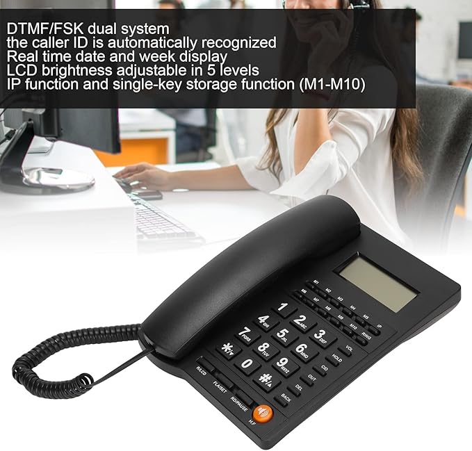 デジタル電話機 、有線電話、調整可能な LCD ディスプレイ ホテル固定電話 発信者 ID 機能、単一キー記憶、R キー転送機能付き有線電話