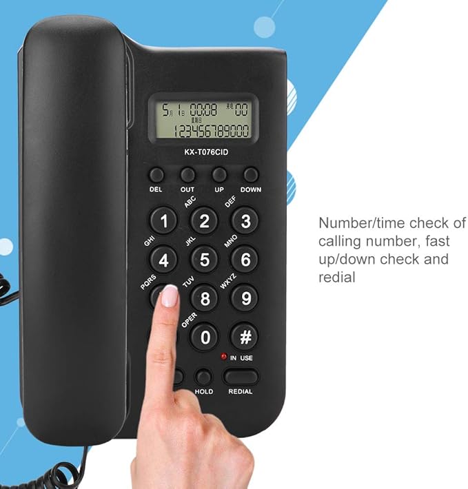 Vbestlife 固定電話 KX-T076 FSK/DTMFデュアルシステム有線大型ボタンデスクトップ壁電話固定電話 ホームホテルオフィス用(黒)