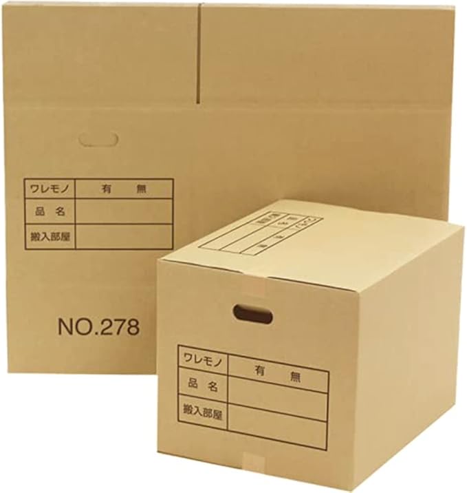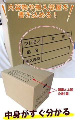 ダンボールの側面と丈夫に内容物等が書き込める欄がございます。引っ越しだけでなく書類の仕分け等にもご活用いただけます。こちらの商品は配送の都合上、折って発送しております(※商品画像参照)。商品の使用に問題はございませんが、側面に折り目がつきますので予めご了承の上、ご購入をお願いしております。