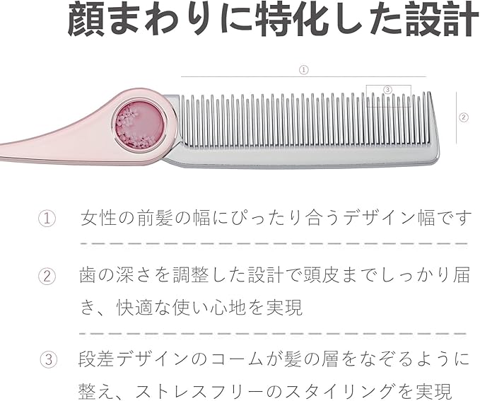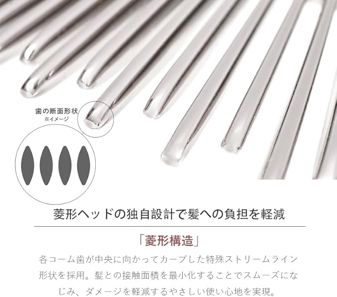 【表面がマット仕上げ】特殊加工されたマット表面が、接触時の摩擦を最小限に抑え、髪へのダメージを軽減。ヘアケア用くしとしてもご使用可能で、ストレスのない快適な使用感を実現しながら、髪のサラサラを改善させます