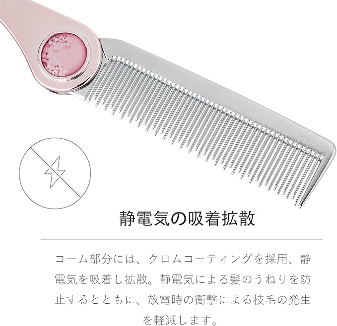 【静電気を軽減】髪の毛にふれるコーム部分には、クロムメッキを採用。乾燥や摩擦により発生する静電気を軽減します