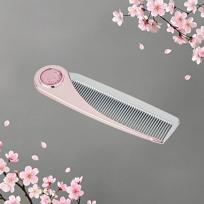 ローズゴールド桜デザインヘアコーム|静電気防止コーム 櫛 ヘアくし 折りたたみ お出かけ用コンパクトコーム ギフト 女性