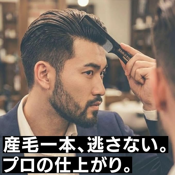 コーム歯が粗目のメッシュコームと細いコーム櫛を使い分けることで、ラフな無造作スタイルからクラシカルなBARBERスタイルまで、さまざまな髪型のセットに最適!