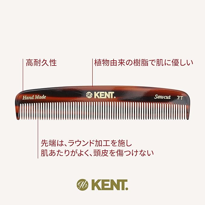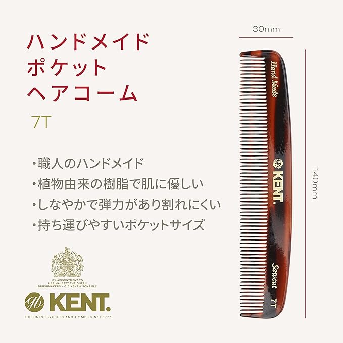 GB KENT ケント 英国王室御用達 高級 ハンドメイドヘアコーム 136mmポケットコームくし 櫛 持ち運び 携帯 持ち歩き コンパクト 天然由来 静電気抑制 サラサラ 細かい歯 7T (クラシックカラー)
