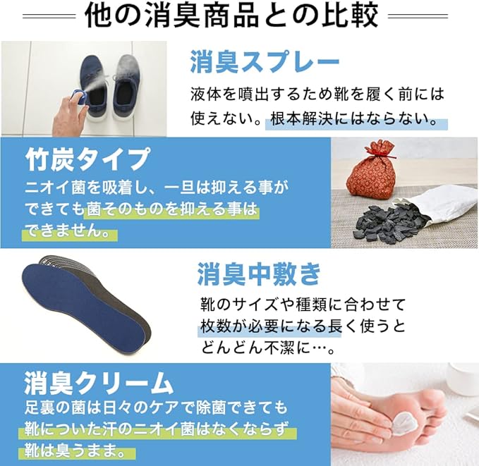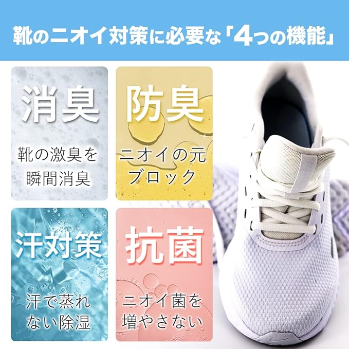 【簡単一振り】消臭効果はもちん除菌・抗菌で足元を清潔、快適に保ち嫌なニオイの原因菌をブロック!出かける前に1振りするだけでOK!季節の変わり目に靴箱に収納する前に1振りしてください。次の年出すときにはニオイ菌を除菌!