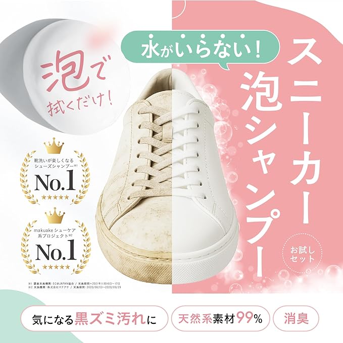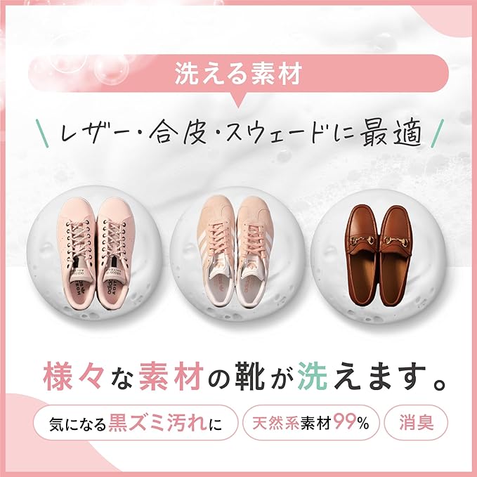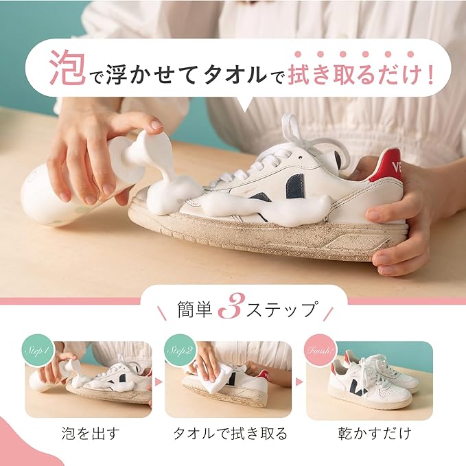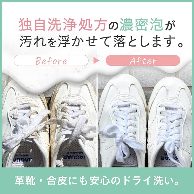 水不要の濃密泡:泡を拭き取るだけで手軽に靴洗い。