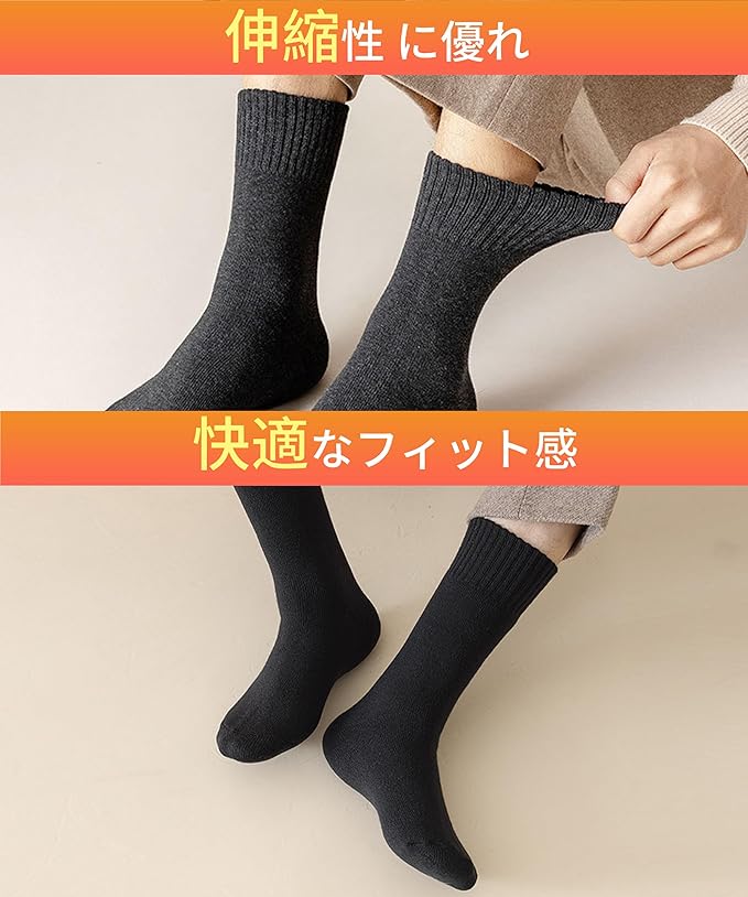 【商品説明】肌寒い季節に大活躍して、秋・冬・春の3シーズン対応メンズ靴下です。【素材】ウール、コットン、ポリエステル、スパンデックス【サイズ】24-28㎝【重量】:約56g。寒い冬の日には、一歩一歩に暖かさが必要です。 こたつのように暖かい靴下は、繊維の1本1本に暖かさのパワーを秘めています。 冷たい風が吹いても室内暖房が不足しても暖かさを感じることができます。冷たい足から離れて、冬の暖かさと安らぎをお楽しみいただけます。