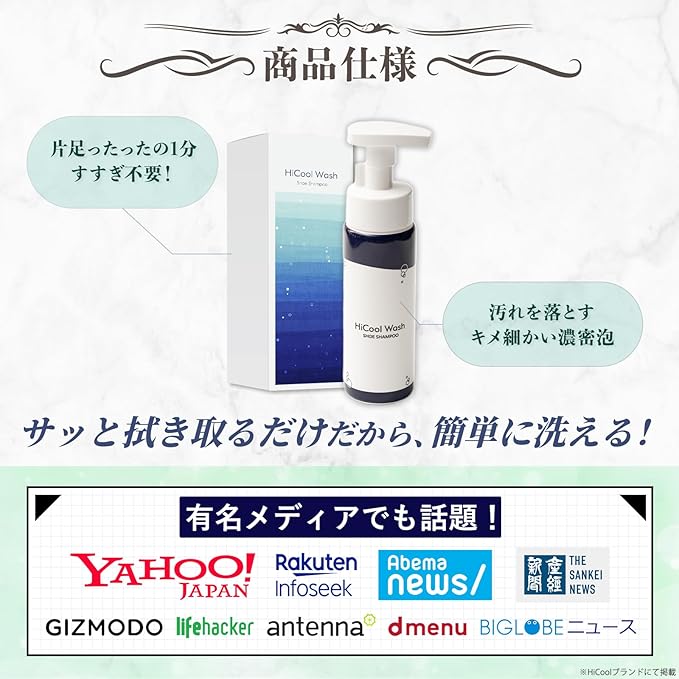 HiCool Wash(ボトル単体)-1分靴磨き 歯ブラシ磨きOK-【公式】 靴磨き 靴 洗剤 シューケア スニーカー クリーナー