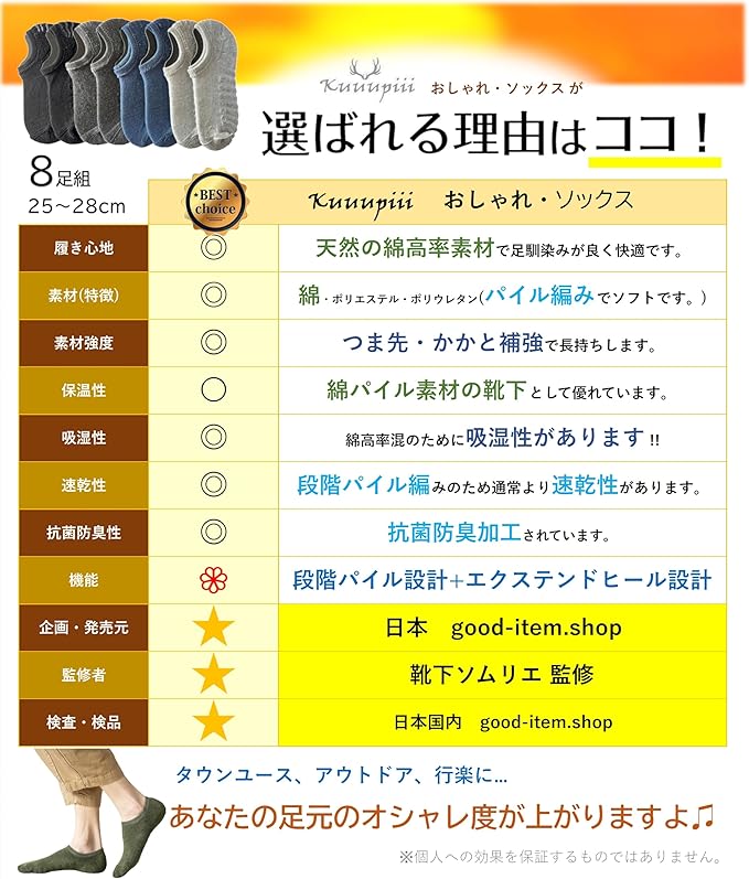 [kuuupiii] 【靴下ソムリエ監修】 スニーカーイン スニーカーソックス フットカバー 深履き 靴下 メンズソックス パイル編み スポーツソックス カジュアルソックス 綿 春夏秋