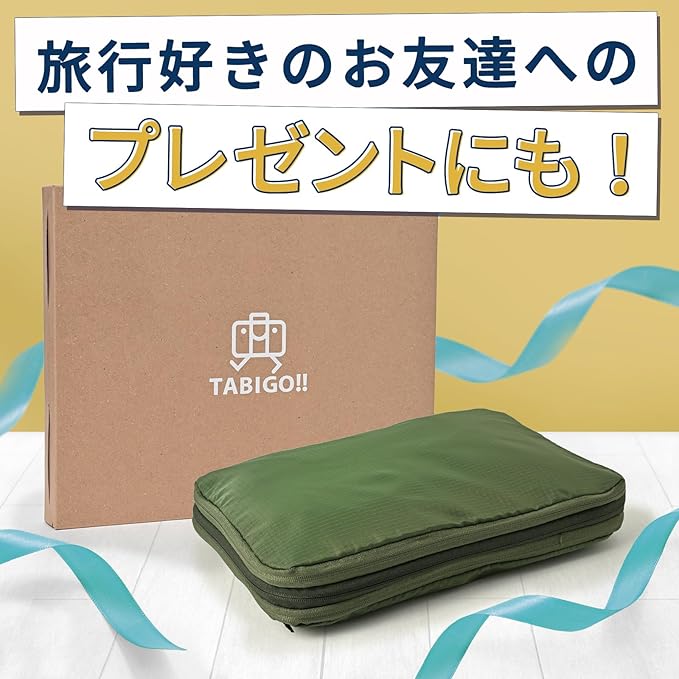 【ファスナーで簡単に圧縮】 旅行 中のかさばる荷物をスッキリ!TABIGO!!の圧縮ポーチは、畳んだ衣類を簡単に圧縮できます。トラベルポーチのファスナーを閉めるだけで、スーツケース内がスッキリまとまり、パッキングが楽になります。さらに、両側ポケット仕様により、着用前と着用後の衣類を分けて収納することができ、衛生的で効率的な使い方が可能です。コンパクトな収納と衣類の衛生管理を同時できる便利グッズです。