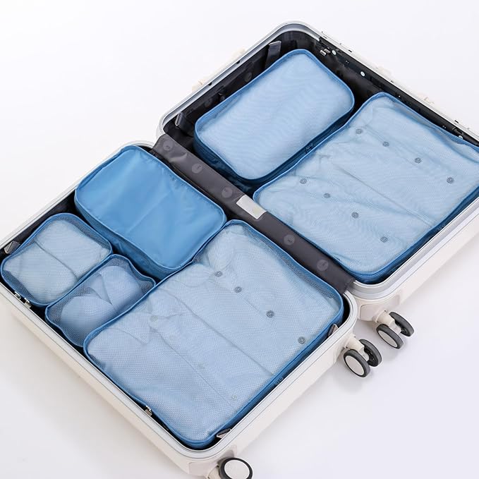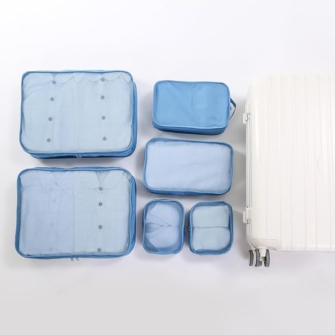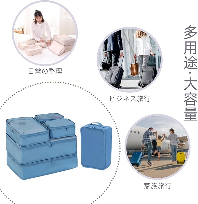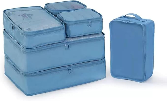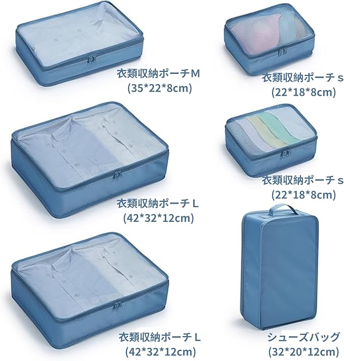 TIANZONG トラベルポーチ パッキングポーチ アレンジケース 6点セット 大容量 超軽量 出張 旅行 便利グッズ 下着収納キューブ 衣類収納 鞋袋 (ブルー)