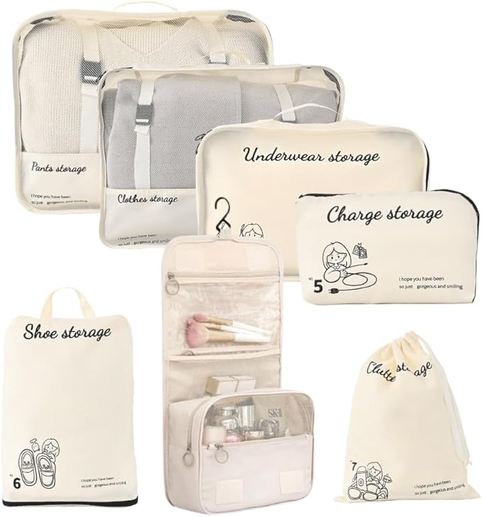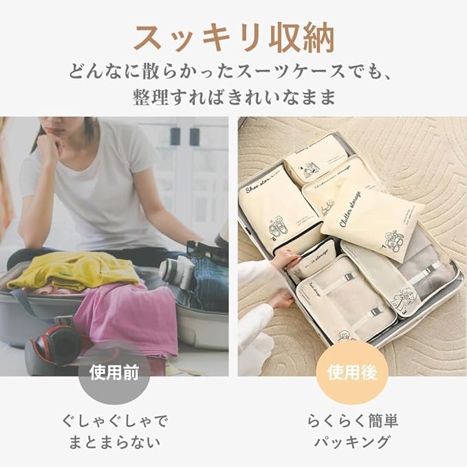 【クリエイティブなプリントデザイン】各収納袋にはユニークなプリントデザインが施されており、中身を一目で区別できるため、探し物で袋を何度も開ける手間が省けます。