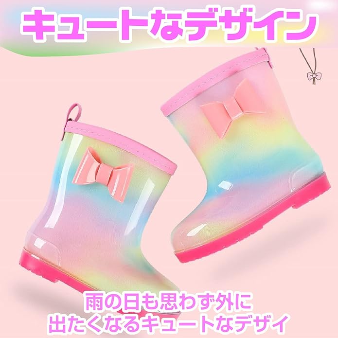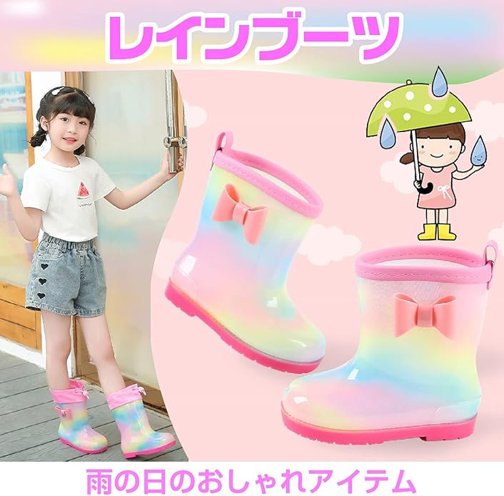 [CAWKAY] キッズ 長靴 レインブーツ 女の子 子供 長ぐつ 雨靴 かわいい おしゃれ 女子 靴 ブーツ