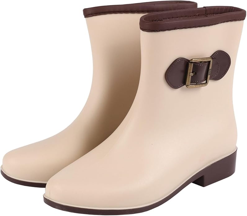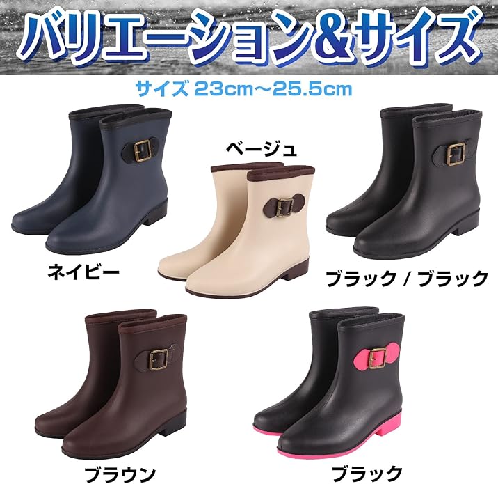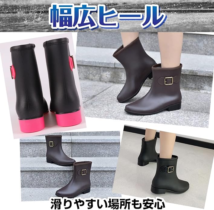 【快適な履き心地&歩きやすい設計】 ヒールの高さは約2.5cmのスクエアヒールを採用し、歩行時の安定感を確保。幅広設計のため、足が疲れにくく長時間の使用にも最適です。足首をしっかりホールドするショートブーツ仕様で、フィット感も抜群。軽量なPVC素材を使用し、柔らかく快適な履き心地を提供します。
