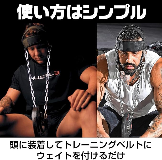 【簡単な使用方法】 頭に装着し、トレーニングベルトにウェイトを付けるだけのシンプルな使用方法です。初心者から上級者まで、誰でも簡単にネックトレーニングを行うことができます。