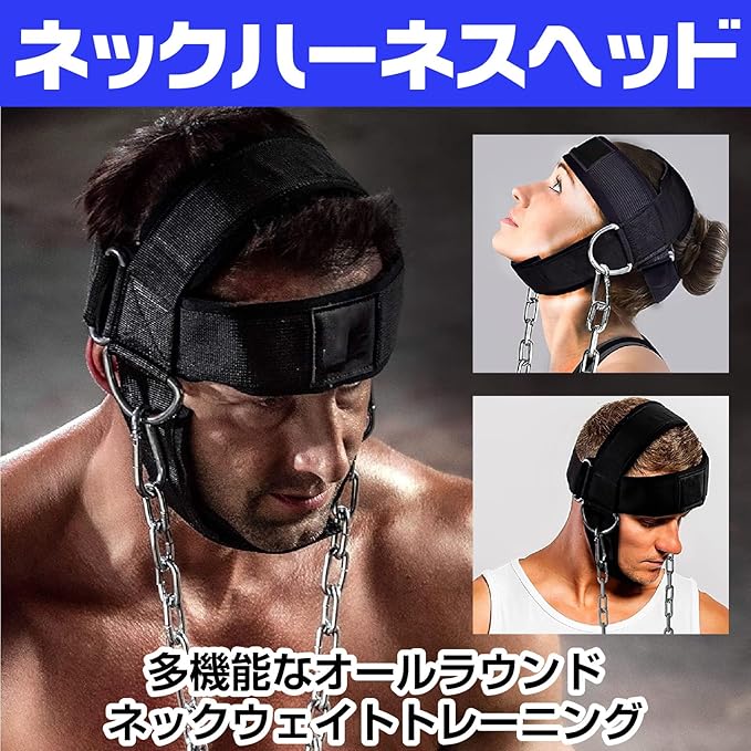 CAWKAY ネックハーネス 首 筋トレ ヘッドハーネス フィットネス サポー ト 首の強化 スチールチェーン ネオプレンストラップ