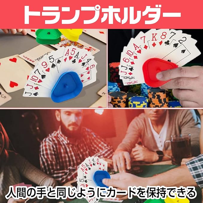CAWKAY ハンズフリー トランプホルダー カードゲームホルダー 三角カードホルダー ポーカー ブラックジャック 大富豪 大人 シニア用 (4色セット)