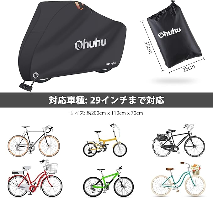 Ohuhu 自転車カバー 防水 厚手 破れにくい 300D 210D 210T 190T雨避け UV加工 防風 盗難防止 29インチまで対応 通常サイズ 収納便利
