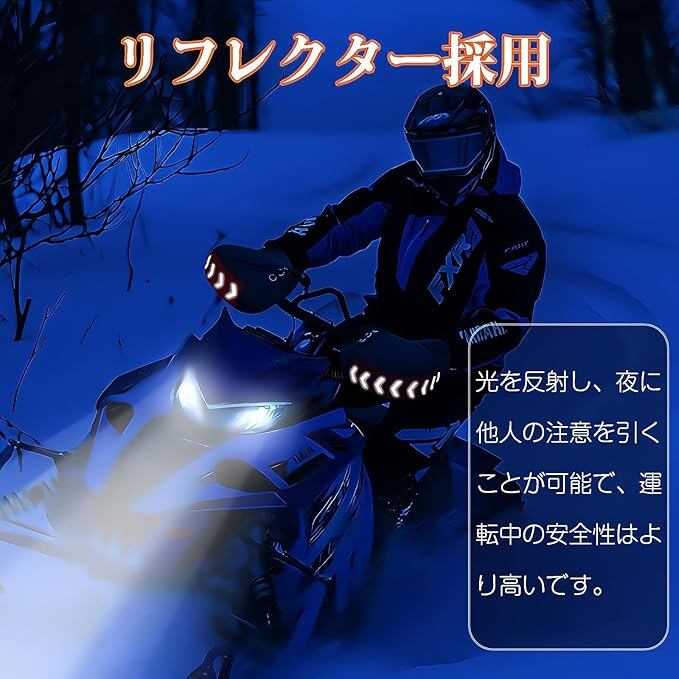 【夜でも、安心。】ハンドルウォーマーの側面にリフレクターが設けらているため、視認性も抜群で、夜間運転の安全性を高めます。