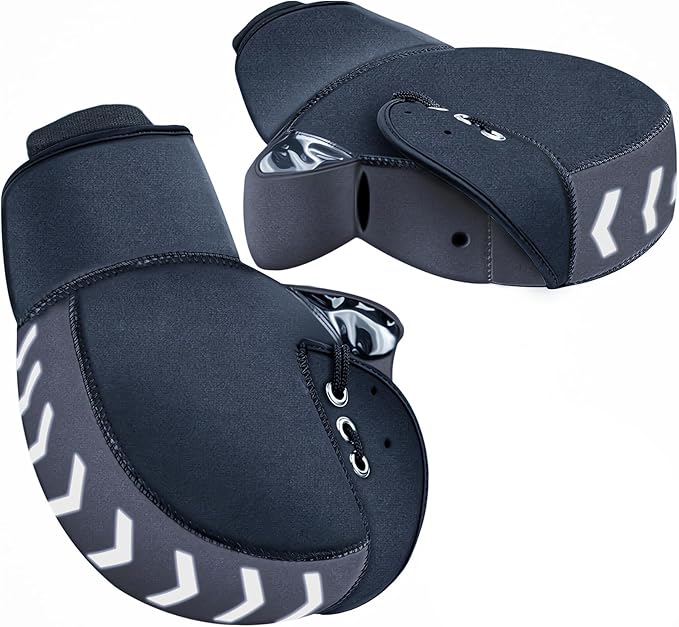 [OFFEREE] バイク用ハンドルカバー 防水 防寒 ハンドルウォーマー バイク バイク用 【秋冬の定番 ネオプレーン製 あったか裏起毛 4層構造 防寒技術新登場】 耐熱 撥水 温かい 保温 簡単取付 スクーター ミニバイク オートバイ 原付など汎用 雨 風 雪 寒い 凍る 手 洗える 冬 バイク防寒具 (ブラック/グレー)