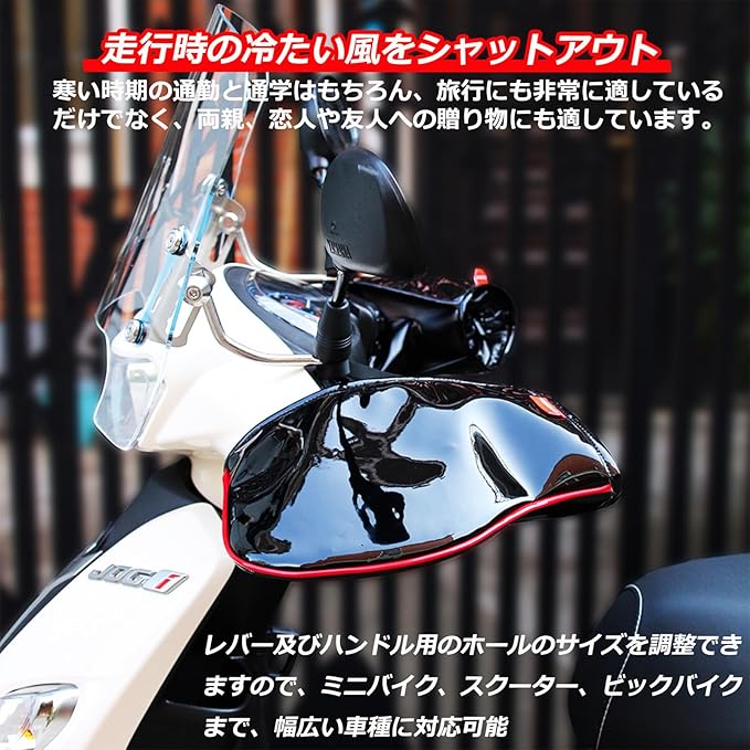 ✺【取付簡単・冬のバイクの必需品】:取扱書があり、固定用の紐をミラーに結ぶといいです。安全性を高めるために、操作に支障が起きないように固定用の紐を縛ってお取り付けください。ミニバイク、スクーター、ビックバイクまで、幅広い車種に対応している汎用タイプなので、寒い時期の通勤・通学はもちろん、ツーリングで遠出する時にも便利に使えます。