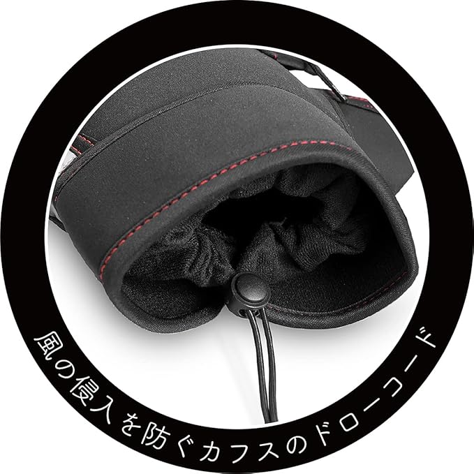 グリップやレバーからのすきま風が入りにくい構造です。裏地には起毛素材を使用し、保温性に優れ暖かです。手首部分の起毛素材が寒風の進入をシャットアウト!