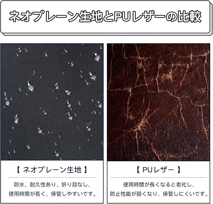【注意事項】本製品は防水性能の高い素材を使用しておりますが、防水性能を超える雨量の場合 、縫製の仕様上縫い目より水が浸みる場合があります。PUレザーよりも使用寿命が長いですが、雨のあるところに長時間放置しないでください。
