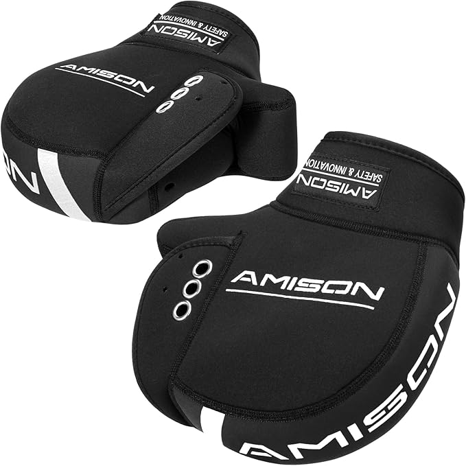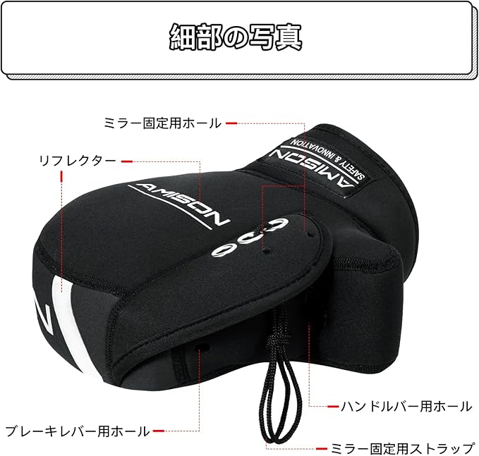 Amison バイク用 ハンドルカバー ネオプレーン 防寒 防水 防風 ハンドルウォーマー 保温 反射コーティング付き ブラック