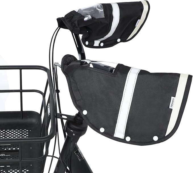 自転車 ハンドルカバー 防寒 防水 ボア着脱可 反射帯付 撥水加工 600Dナイロン 厚手 日よけ 雨よけ オールシーズン使える (11759-ブラック)
