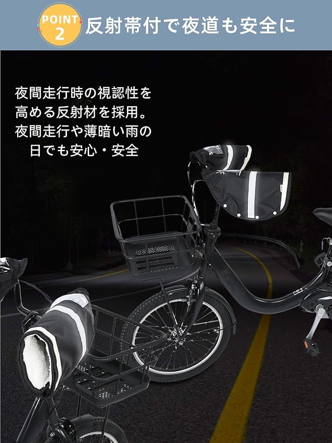 【安心の反射素材付き】:夜間走行時の視認性を高める反射材を採用。夜間走行や薄暗い雨の日でも安心・安全。