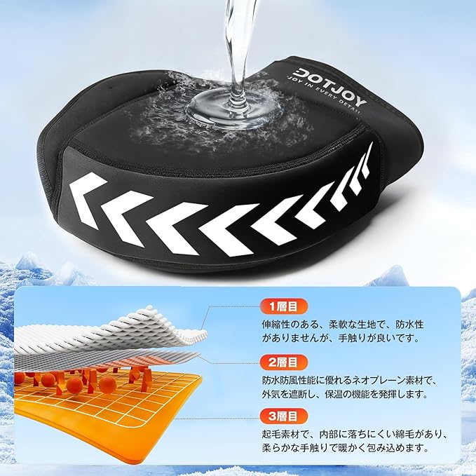 【高品質保温素材】バイクハンドルカバーは3層の異なる生地で構成されています。1層目は伸縮性の高い生地で、2層目はネオプレーン材質で、3層目は起毛素材です。柔らかさ、防風、防水、保温の機能を十分に発揮します。