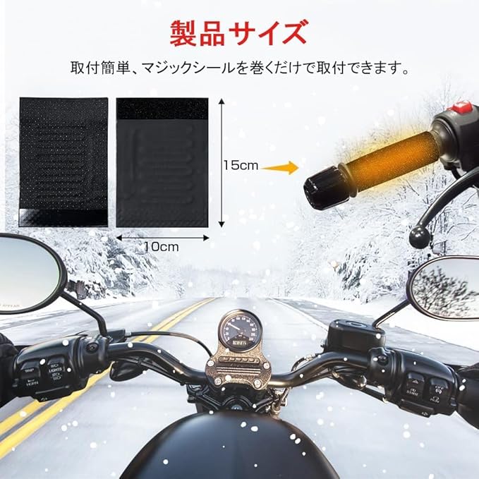 指先の冷え対策。バイク、自転車、オートバイに乗る人にとって、冬のシーズンになると、いくら厚い手袋をはめても寒い風で手が冷たくなり辛くなると、ツーリング、サイクリングを純粋に楽しめない。そんな時におすすめは、このグリップヒーター!
