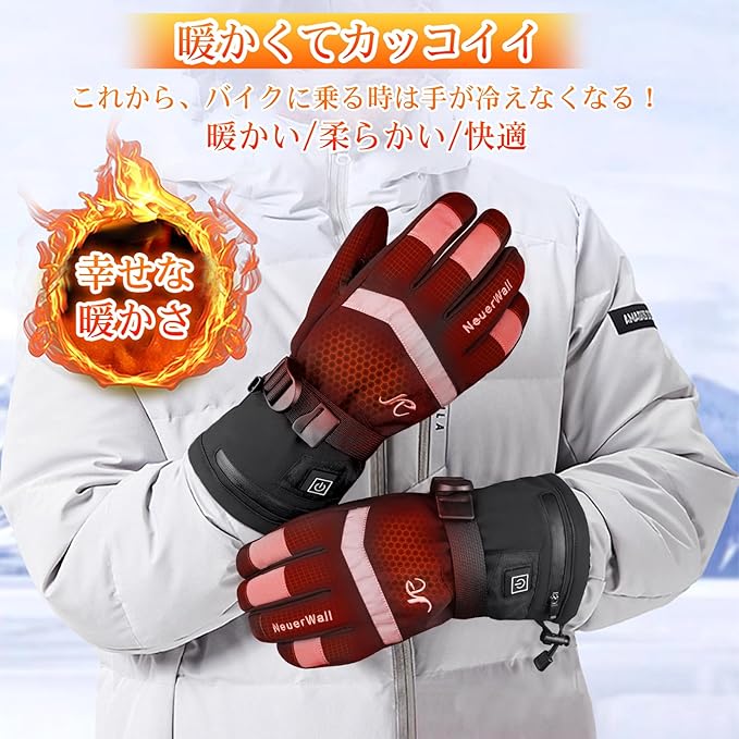 電熱グローブ バイク用 3段階温度調節 指先まで暖かい タッチパネル対応 防寒 防水 防風 滑り止め 冬 ヒーター手袋 電熱手袋 充電式 7.4V 2500mAhバッテリー付き オートバイ 自転車 アウトドア スキー 登山 釣り 冬 男女兼用 冬向けプレゼント PSE認証済 日本語取扱説明書付き