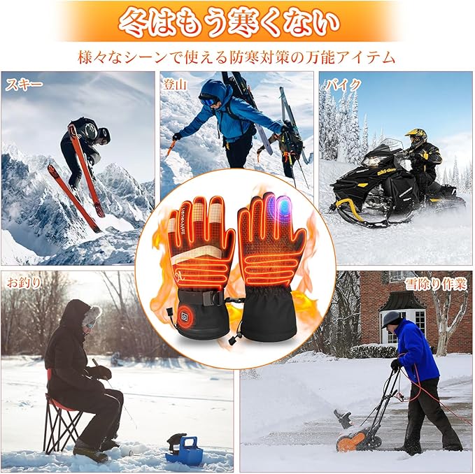 【PSE認証済み・6ヶ月保証期間】電熱グローブは使用されているバッテリーと充電器が、経済産業省認証機関による電気用品安全法の検査を通過し、安全基準を満たした認証(PSE)を取得!より安全性が向上しまして、安心にご使用いただけます。また、お買い上げ日から6ヶ月の保証期間付きで、保証期間内にご満足頂けなければ返金・交換など対応させて頂きます。 冬には、登山・スキー・バイク・自転車・釣りなどのアウトドア活動、通勤・通学・外出時、電熱グローブは幅広く使われています。ご愛している家族や友人、恋人、または自分用など、もっとも最適なプレゼントで、是非ご利用下さいませ。