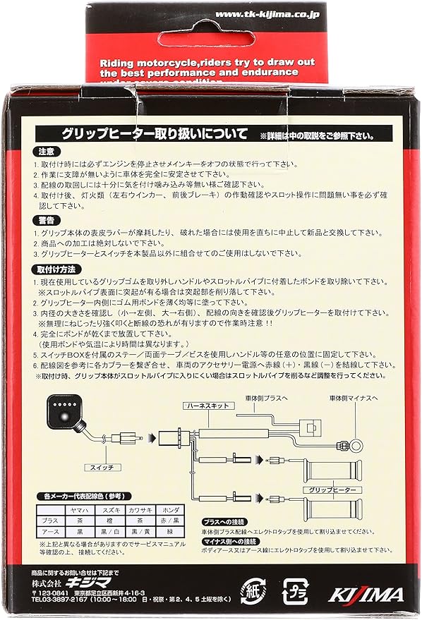 キジマ(Kijima) バイクパーツ グリップヒーター GH08 スイッチ別対式 120mm プッシュスイッチ φ22.2用 304-8203