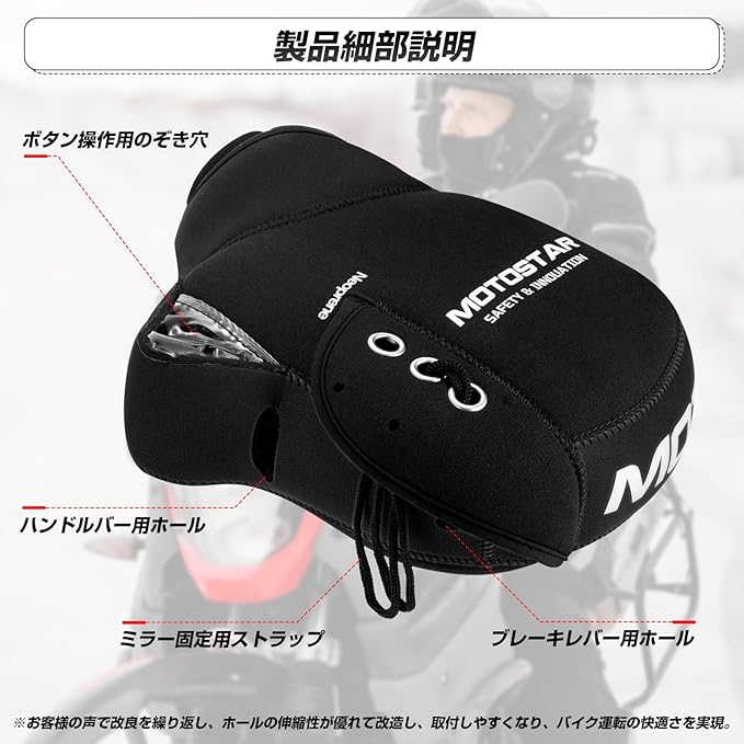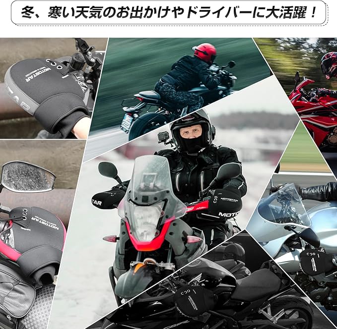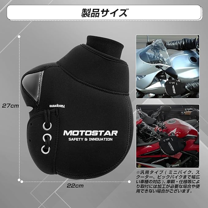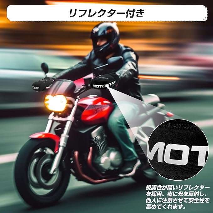 MOTOSTAR バイク用 ハンドルカバー ネオプレーン 取付簡単 ハンドルウォーマー リフレクター付き 防風 防寒 防水 縫い目良い 汎用 保温性 フリーサイズ ブラック